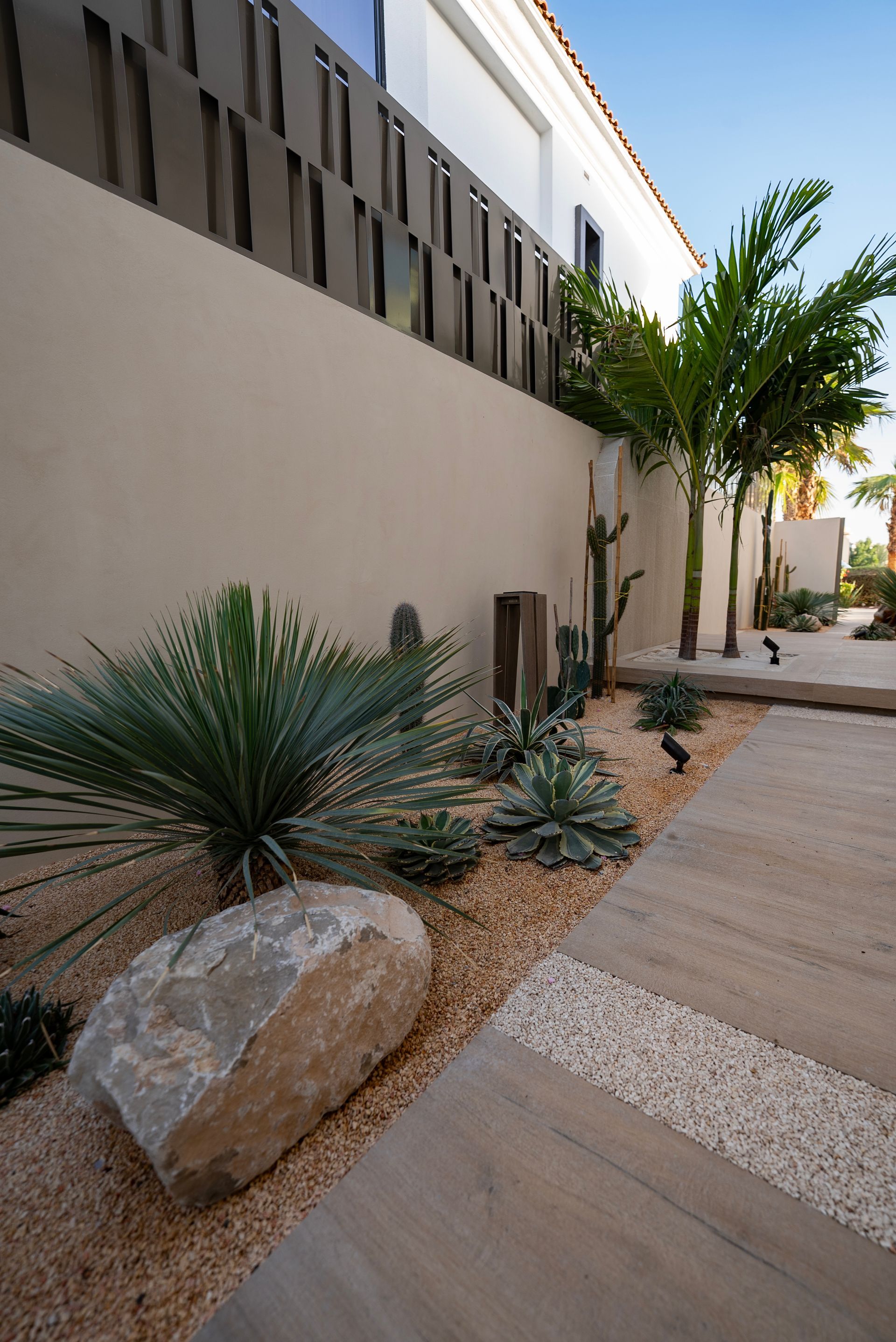 cactus and agave. These architectural plants provide a sleek, sculptural quality that remains flawless year-round with minimal upkeep.