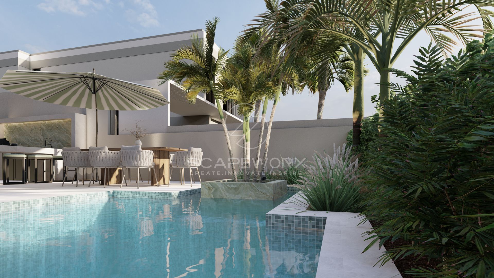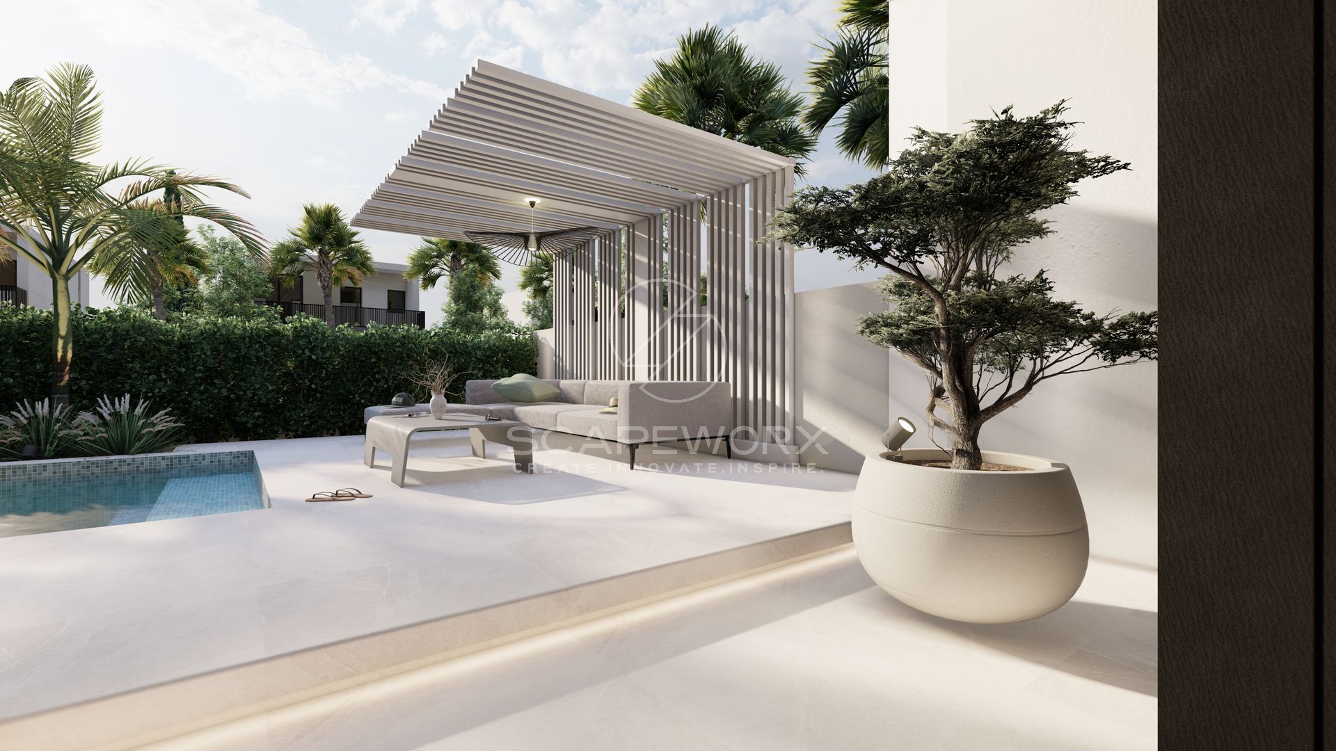 A perfect description for this garden, Modern Rusty Vibes! At This concept we are bringing the true neutral designs to Dubai. with cream bases, natural textures, wooden accents and sleek design elements, this for sure is a timeless garden.